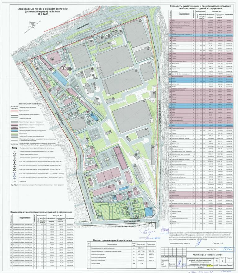 Документация по планировке территории в границах: ул. Чистопольская, ул. Новороссийская, территория промплощадки ГП «Сигнал», западная граница ГСК №320 и ГСК №311 в Ленинском районе города Челябинска»