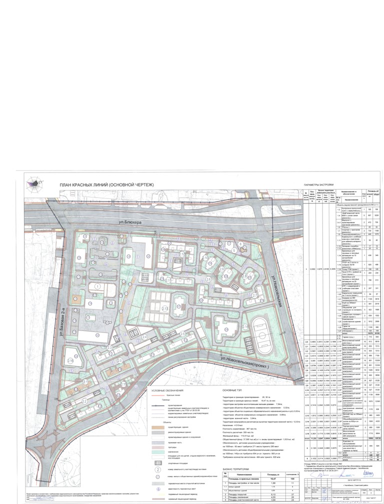 Документация по планировке территории в границах: ул.Блюхера, Новосельская, Базовая 2-я в Советском районе города Челябинска