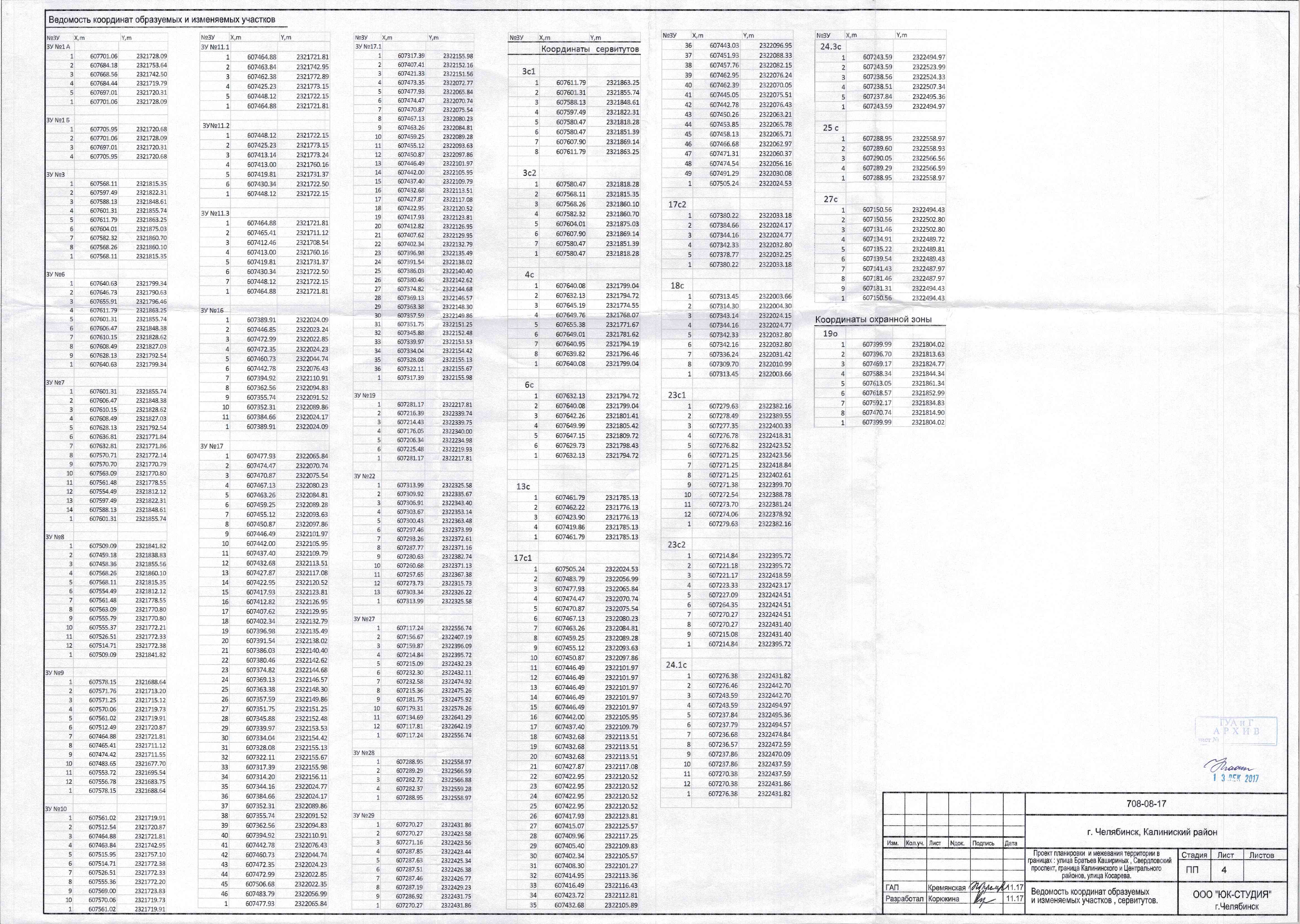 Документация по планировке территории (проект планировки территории с проектом межевания территории) в границах улиц: Машиностроителей, Масленникова, Чайкиной, Дзержинского в Ленинском районе города Челябинска ч.4 (координаты)