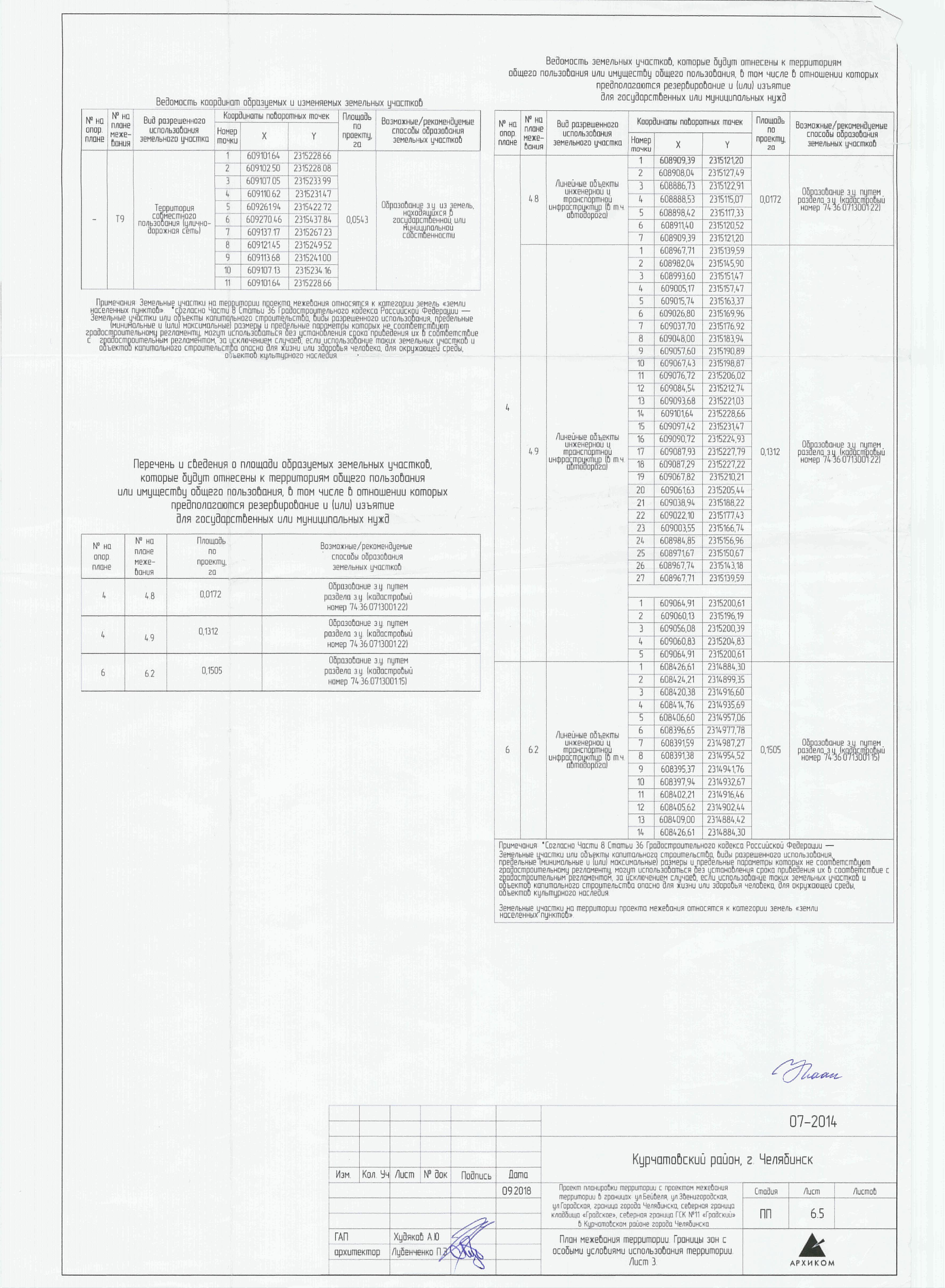Документации по планировке территории (проект планировки территории с проектом межевания территории) в границах: ул. Елькина, ул. Курчатова, ул. Красная, внутриквартальный проекзд в Советском районе города Челябинска ч.3 (координаты)